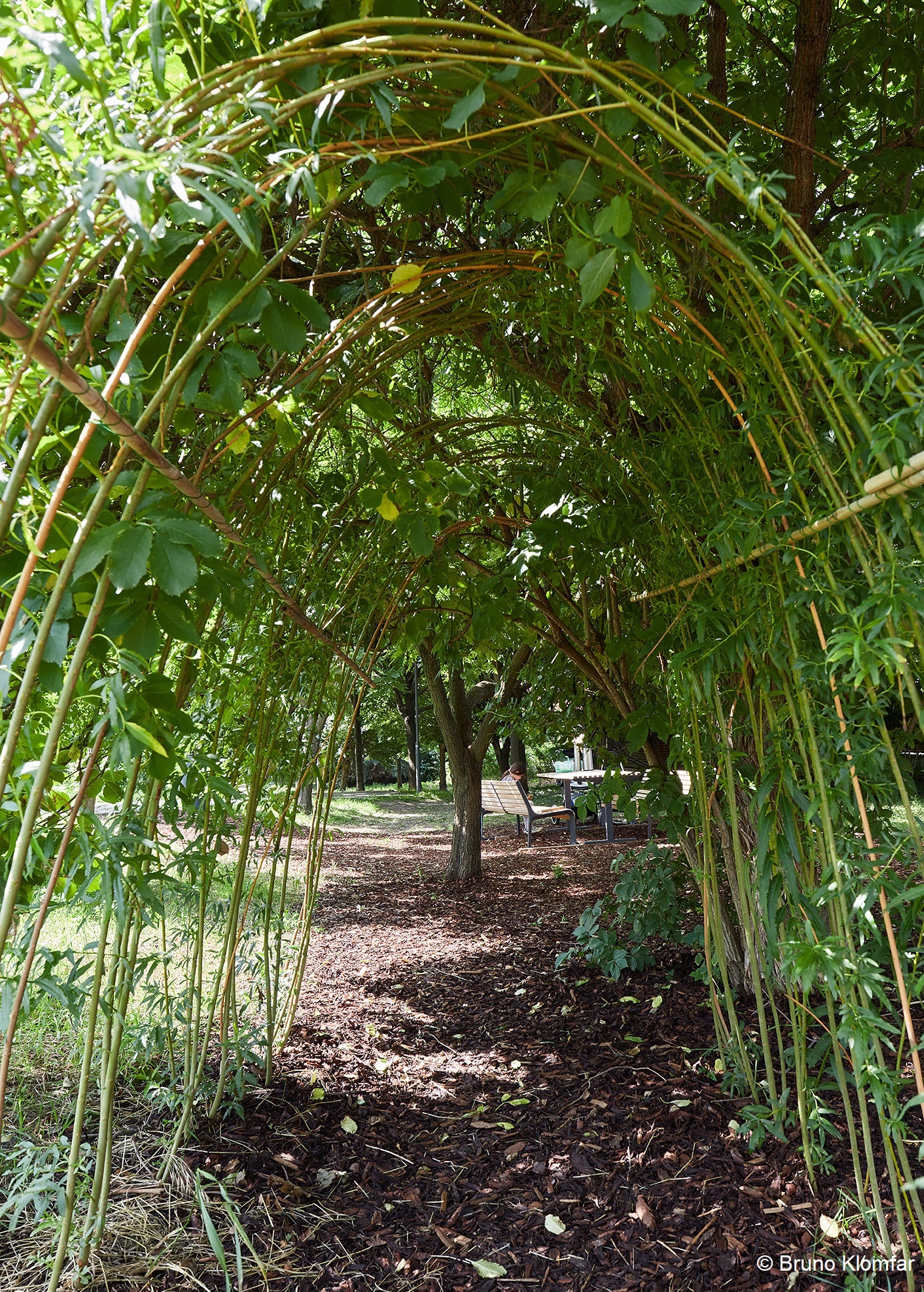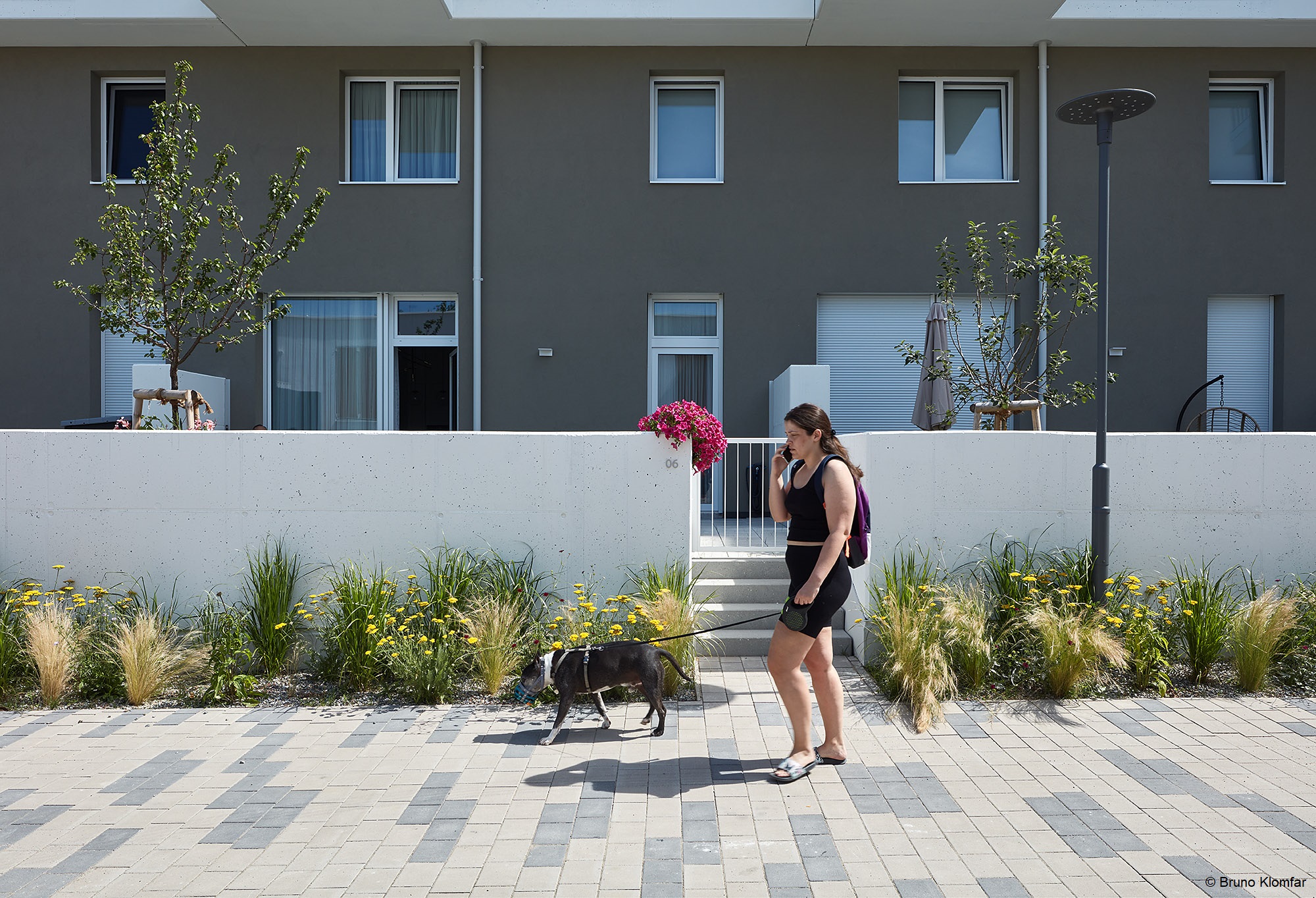 Erhöhte private Gärten sind direkt an den öffentlichen Durchgang angelagert. Sie stehen unter dem Motto: „Mein Garten mit meinem selbst ausgesuchten eigenen Baum!“. Die erhöhte Lage und die Pflanzbeete mit hohen Gräsern in und vor den Gärten bringen die nötige Privatsphäre.